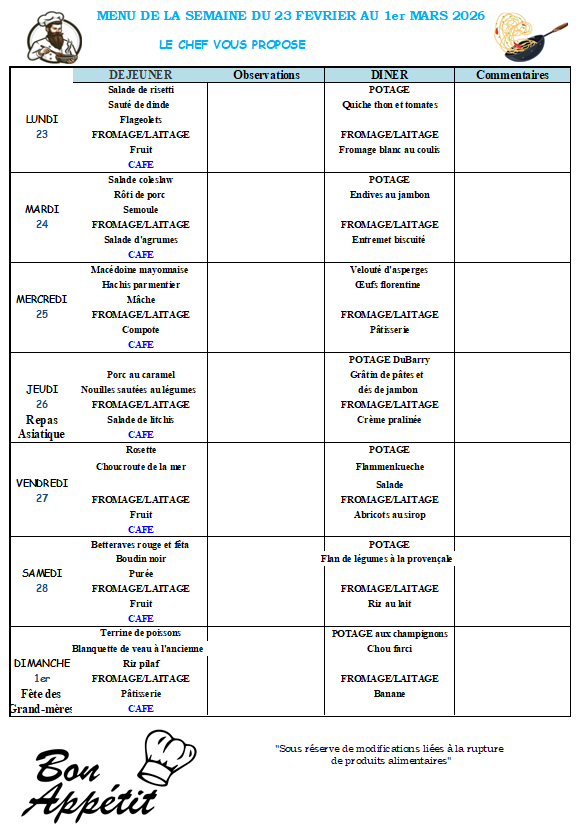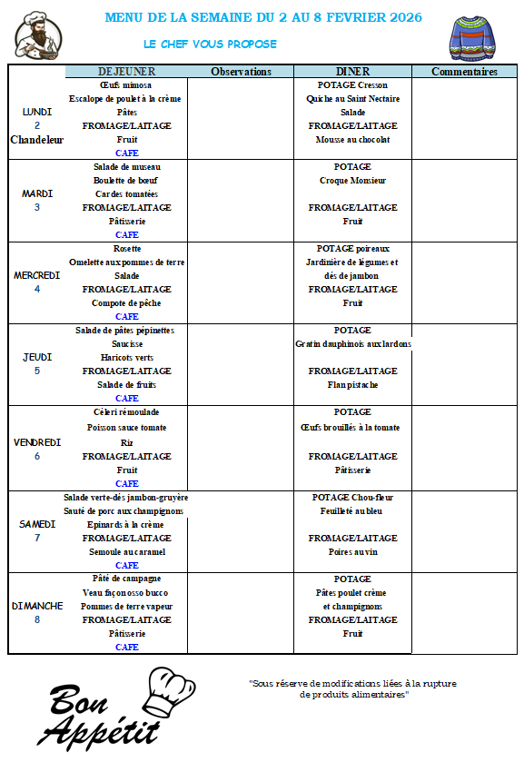 Menus de la semaine